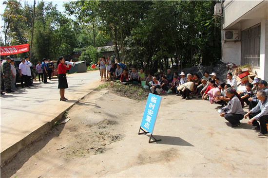 本次演练地选在新桥村容易发生山体滑坡、泥石流的地质灾害点。各小组统一协调,镇卫生院医务人员负责现场伤员的救护,应急分队赶到滑坡一线撤离人员转移重要物资,镇村建所负责险区撤离人员的临时安置,对演练地点周围设立警示标志,整个演练过程紧张有序,确保组织到位、救援到位、人员到位、保障到位。