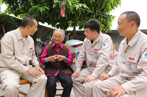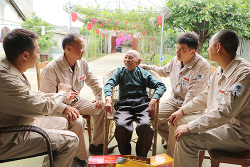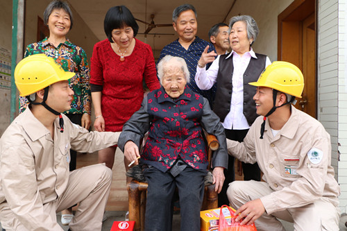 当天,服务队先后看望慰问了陈玉芳、梁学华、赵步云等3名百岁老人,并与他们攀成了亲戚,成了老人们的儿子。当日,是国家电网四川电力(眉山彭山)共产党员服务队开展与百岁老人攀亲和服务百岁老人的第一天。为了让百岁老人们开心生活,幸福长寿,长期感受共产党领导下的社会大家庭的温暖,该服务队决定对该区的所有百岁老人进行定期慰问,并在照明线路维修等方面进行服务。