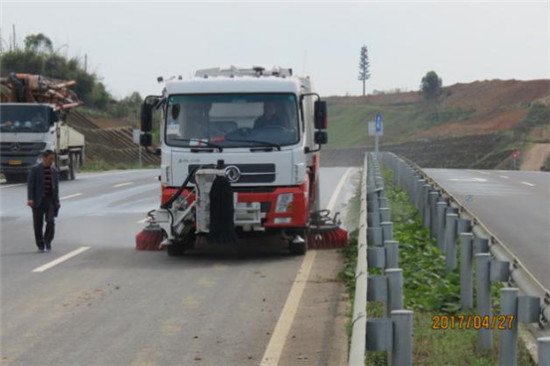 扫地车清洗成彭大道公路护栏和公路路面清扫