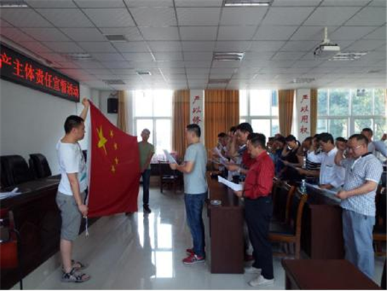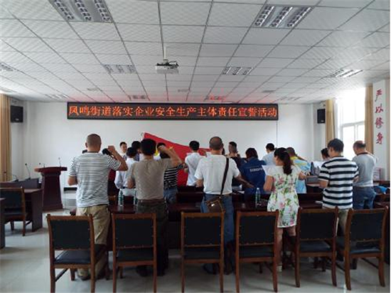 当天下午,凤鸣辖区内各企业负责人按时来到凤鸣街道办党群服务中心二楼,到会企业畅所欲言,说出了自己在安全生产工作方面单位体会和经验,深刻意识到自己所担负的责任和义务,街道办分管领导就安全生产工作提出要求,特别是做好端午节期间安全生产工作检查,确保企业安全发展。随后便举行了隆重的宣誓仪式。面对鲜艳的五星红旗,在企业领誓人的带领下,各企业负责人对着红旗庄严宣誓,郑重承诺。