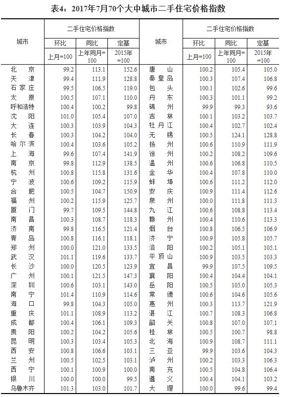 - 7月全国70个大中城市住宅销售价格情况发布(表)
