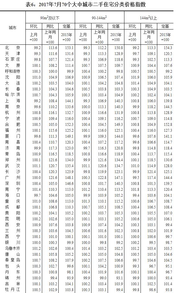 中新网8月18日电 国家统计局今日发布了2017年7月份70个大中城市住宅销售价格统计数据。数据显示,15个一线和热点二线城市新建商品住宅价格同比涨幅继续全部回落,10个城市环比下降或持平;70个大中城市中一二线城市房价同比涨幅持续回落;70个大中城市中环比持平或下降城市个数增加。