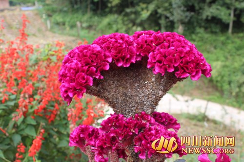 在山头的另一端,农庄养殖场饲养跑山鸡一片红彤彤场景,在规定范围内鸡群在草丛、树林、山崖、沟壑觅食、嬉戏,看上去羽毛光亮,肉质肥硕,每只鸡足有7斤左右。陈勇说,这些全生态的放养鸡大批量销往成都市场,也有不少游客喜欢带上几只回家,为保证鸡的肉质口感,饲料以投放玉米、麦麸和青草为主,确保生长期在8个月以上。木栅栏里的山羊在嗷叫,6、7头大肥猪在圈里酣睡,旁边还豢养着供游客观赏的两只刺猬,仿佛像到了动物园一般。