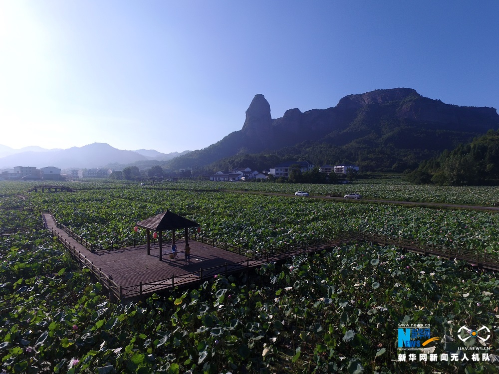 石城县大畲村荷花园里,百亩荷花竞相绽放。新华网(杨益民 摄)