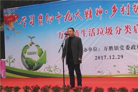 四川新闻网眉山12月29日讯(邱毅 文/图) 眉山市东坡区万胜镇万光村作为全区“生活垃圾及分类试点村”单位,今天上午,在该镇文化广场举行了有近两千群众参加的启动仪式。东坡区副区长赵飞宇发表讲话,万胜镇党委书记朱柏方宣布启动仪式开幕。