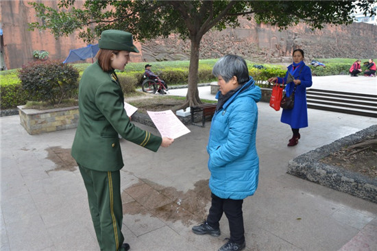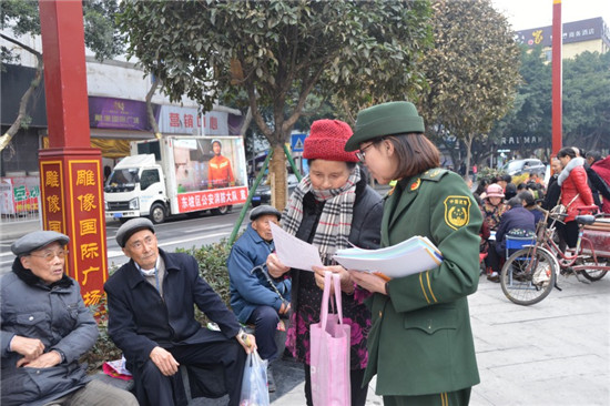 四川新闻网眉山1月16日讯(张意捷 图/文)为深入推进今冬明春火灾防控工作,提升人民群众消防安全意识和逃生自救能力,确保春节期间辖区火灾形势稳定。1月15日,眉山市东坡区公安消防大队义务消防宣传人员走街串巷,开展消防宣传活动。