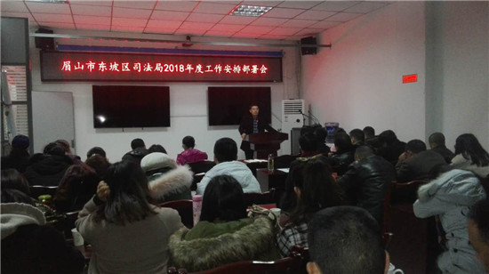四川新闻网眉山1月30日讯(王春 图/文)1月26日上午,东坡区司法局召开了2018年工作部署会议,全体在编干部职工参加。会上,各股室负责人和分管领导就2018年工作如何提档升级进行了安排部署。同时,特别邀请2位工作业绩突出、亮点纷呈的基层司法所负责人进行了工作经验交流。