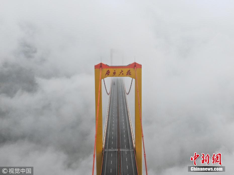 普立大桥云飘雾绕 仿佛开车驶入仙境