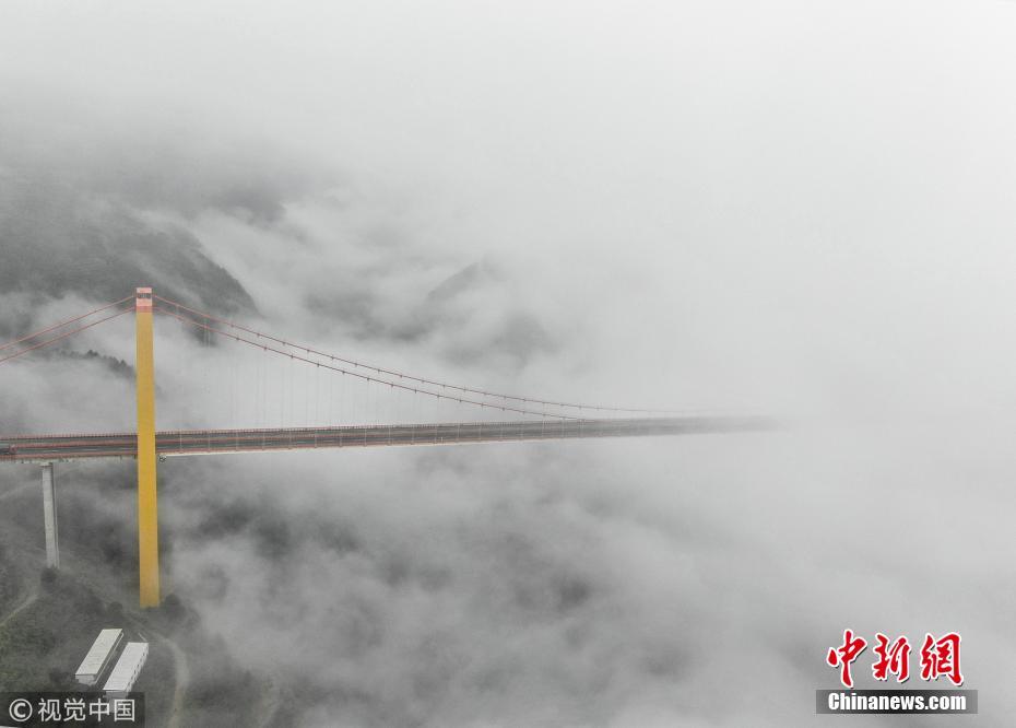 普立大桥云飘雾绕 仿佛开车驶入仙境