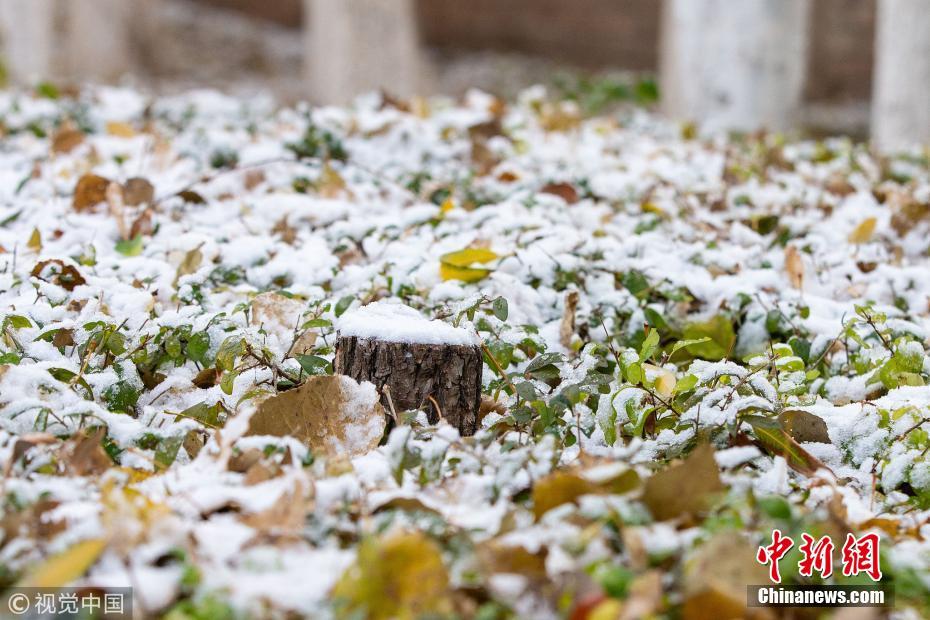 2018年10月28日,吉林长春,秋叶还未落尽,河水还未结冰,青青的小草还未来得及彻底枯萎,整个城市还沉浸于秋天的景色里,还需要一个星期才入冬,2018年入冬前的第一场雪突然降临,扬扬洒洒地飘舞了几个小时,奏响冬天来临前的序曲。 图片来源:视觉中国