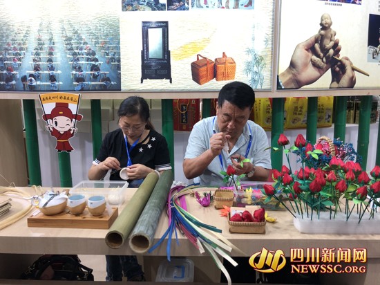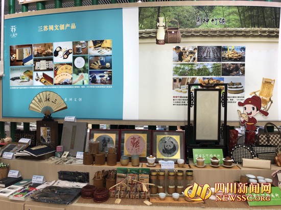 今年旅博会,眉山展馆设置了“味在眉山”“购在眉山”展示区,集中展示眉山特色文创产品和旅游商品50余种上千件,游客在逛旅博会眉山馆时,不仅能免费品尝到美味的东坡美食,还能选购到地道的眉山特色旅游商品和“国家级非遗”青神竹编工艺品等特色文创产品。