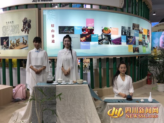 四川新闻网眉山9月6日讯(记者 李田 摄影报道)9月6日,第五届旅投会、第六届旅博会在乐山峨眉山市开幕。记者从眉山市获悉,旅投会、旅博会期间,眉山市开工建设总投资245亿元的多个重大文旅项目,开工项目数、项目投资额居四川省前列。眉山展馆现场将进行竹服饰展演、青羌服饰展演、茶艺表演、竹编非遗技艺展示、“味在眉山”美食品鉴、购在眉山商品展销等十大精彩互动体验活动。
