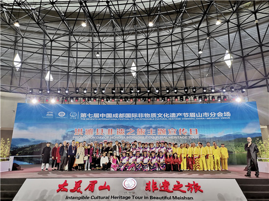 四川新闻网眉山10月17日讯(吕伟利 记者 李田)10月17日,大美眉山·非遗之旅第七届中国成都国际非物质文化遗产节(眉山市分会场)在眉山会展中心盛大举行。当天,来自眉山市洪雅县的非遗展演惊艳亮相。