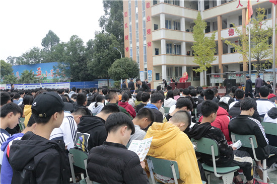 四川新闻网眉山11月8日讯(罗珊 文/图) 昨(7)日下午,丹棱县人民法院走进丹棱县职业中学开展“庭审进校园”活动,公开开庭审理一起“容留他人吸毒、危险驾驶”案件。此次活动得到校方积极支持,共有师生520余人现场观摩庭审。