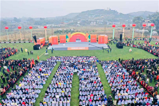 开幕式上,村民们载歌载舞庆祝丰收。来自世界各地的农业专家、农业企业、采购商、知名媒体等800余名嘉宾以及上万民热心群众齐聚于此,共贺中国·青神第十届椪柑节。