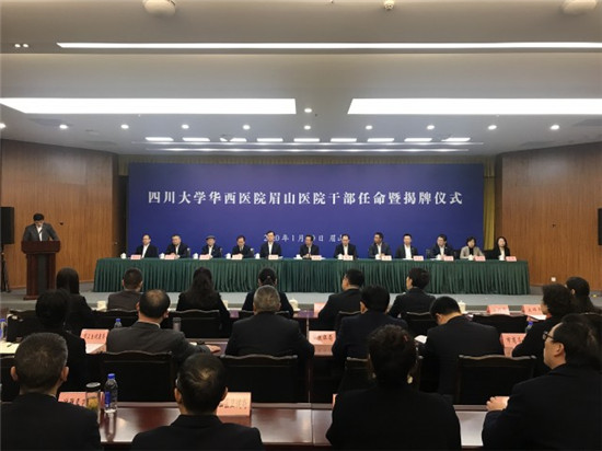 四川新闻网眉山1月10日讯(邱毅 郑佳洁 文/图)今(10)日上午,四川大学华西医院眉山医院干部任命暨揭牌仪式在眉山举行,标志着四川大学华西医院眉山医院正式揭牌,成眉服务同城实现重大突破。