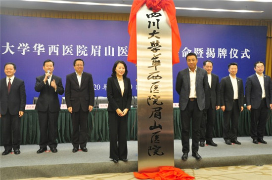眉山市委书记慕新海、四川大学华西医院党委书记张伟出席并讲话,揭牌仪式由市委副书记、市政府党组书记胡元坤主持,四川大学华西医院常务副院长黄勇、眉山市政府副市长曹晖为四川大学华西医院眉山医院揭牌。