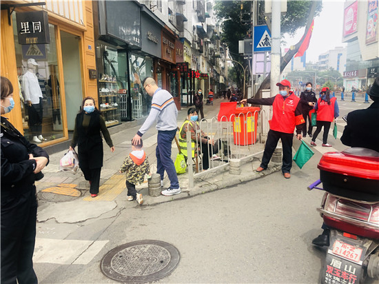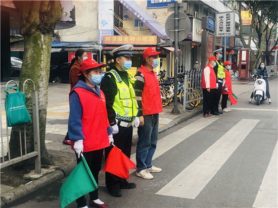 活动中,志愿者面对面向群众讲解道路交通安全法积极主动维护路口非机动和行人交通秩序,提醒群众注意看交通信号灯、不要逆行、过马路要走斑马线等,耐心向群众讲解违反道路交通规则的危害性,引导群众文明过马路。