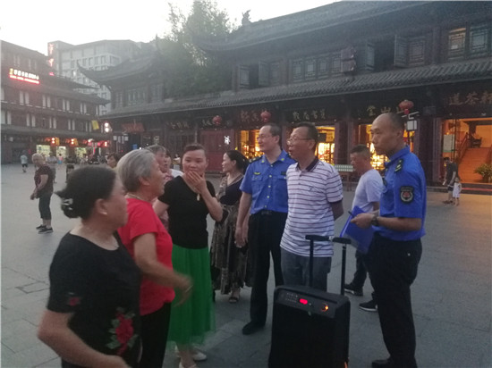 为维护东坡文化旅游景区社会稳定,着力构建“健康、文明、有序”的广场舞管理新秩序。据悉,从6月14日至7月14日,眉山市住建局综合行政执法支队五大队联合东坡文化旅游景区各部门开展为期一月的噪音专项整治活动。本次噪音专项整治由景区管委会牵头,执法五大队协同景区保卫部、管理科,抽调精干力量成立禁噪工作组,明确带队领导,专人负责。