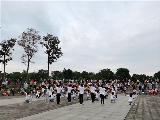 据了解,正值建党99周年,市文广旅局、市直机关工委、团市委共同主办策划了这样一次活动,刚刚成立的眉山市歌舞剧院的舞蹈演员们用舞蹈和音乐串烧的形式,在东坡湖广场、东坡城市湿地公园、万达广场开展三场快闪活动。