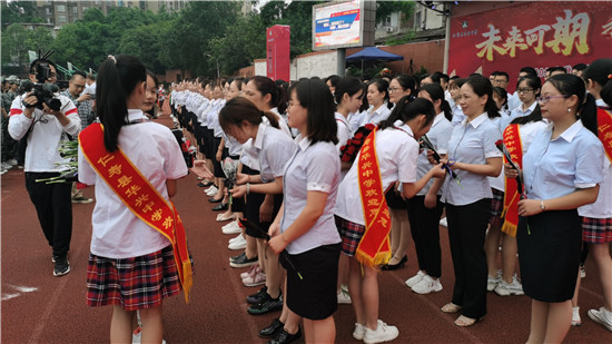 四川新闻网消息(潘建勇 蒋麟 郑丽霞 文/图)9月10日上午,在36个教师节来临之际,四川多地以各种形式来庆祝教师节,在四川省眉山市仁寿县华兴中学内,学生们在行拜师礼后,集体向老师鞠躬行礼,合唱《每当我走过老师窗前》,并连连高升呼喊:老师,您辛苦了!老师,我们爱您!