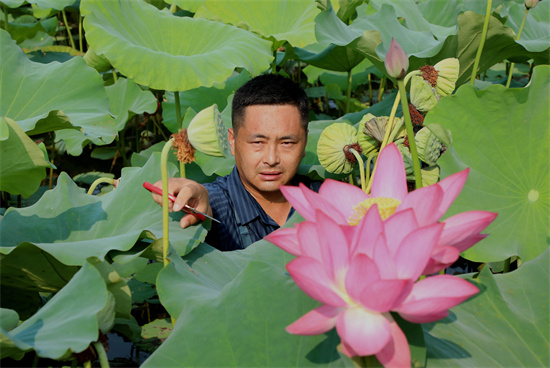 “在荷塘里养鱼,一亩荷塘能产200斤莲子、400斤莲藕和500斤鱼。”张大志说,除了种植荷花,他还在旁边的池塘里养殖小龙虾,围绕休闲观光产业,打造集乡村风情、文化传承、生态观光、体验采摘、休闲度假等一体的现代农业观光旅游基地。