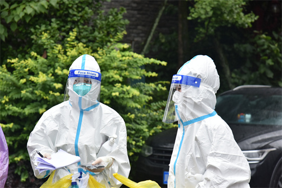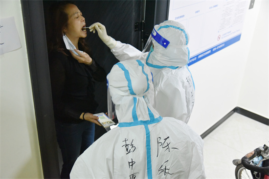 敲门、核对信息、扫健康码、咽拭子采样……简单的动作重复多次也会变得不简单,就是这样的工作,她们一天要重复上百次,采集几百个样本。因身穿防护服,这些“大白”们都不敢喝水,生怕会浪费掉一件医用防护服。一件裹得严实的防护服,她们有时候一穿就是六七个小时。