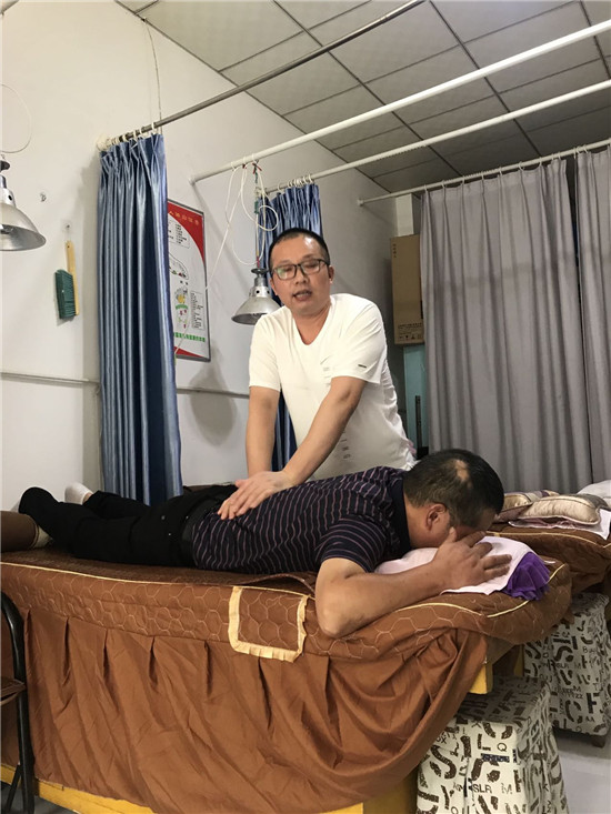 就在这时,东坡区残联开展的“量体裁衣式”个性化服务,为牟向东带来自主创业的机会,街道残联根据他从部队学就的一手按摩技艺,竭力推荐他参加眉山市残联举办的盲人免费按摩培训班培训,经过理论知识学习和大型按摩店跟班实践,再次提升了牟向东的按摩技能,并成功拿到盲人按摩师初级证书。接着,牟向东开始在城区一家盲人按摩店打工,经过一段时间的磨合之后,牟向东自主创业的愿望愈发强烈。苏祠街道残联了解到这一情况,跑腿帮助他办好了营业证照。当年他便在眉山东站附近街巷,将租用的40余平方米店铺进行装修改造,购置按摩床、大空调、洗脚盆、中药水等用具设施,将盲人按摩与药水泡脚业务融为一体,开启了“牟式正骨盲人按摩店”的创业之旅。