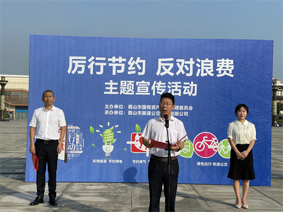四川新闻网消息(郑佳洁 摄影报道) 8月10日,由市国资委主办、眉山市展通公交公司承办的“厉行节约 反对浪费”主题宣传活动在眉山东站广场举行,旨在进一步加强节能降耗宣传,引导市民群众节约用电、用水、用气,倡导市民优选公交,绿色低碳出行。
