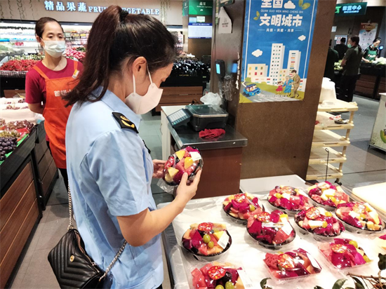 四川新闻网消息 夏季鲜切水果深受年轻人喜爱,但常温条件下鲜切水果易滋生细菌,存在一定的食品安全风险。为守护好人民群众“舌尖上的安全”,切实推进“守底线、查隐患、保安全”食品安全专项行动,近期,彭山区市场监管局针对辖区内大型商超夏季鲜切水果开展了食品安全专项检查。