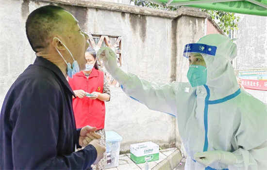 据了解,华西二院眉山市妇女儿童医院共派出2支队伍,他们分别到达成都锦江区、成华区、都江堰市、邛崃市等点位,该院副院长谢红担任本次援蓉核酸采样检测队总领队。面对全民大规模核酸的任务,他们每天早上五点起床准备,最晚一天凌晨一点过才回到酒店吃上晚饭。采样任务爆发增长,时间紧、任务重,每个操作都无限拉长,其中的辛苦,不言而喻,随着一轮又一轮的核酸检测,即使精疲力竭、汗如雨下也不能有丝毫差池。