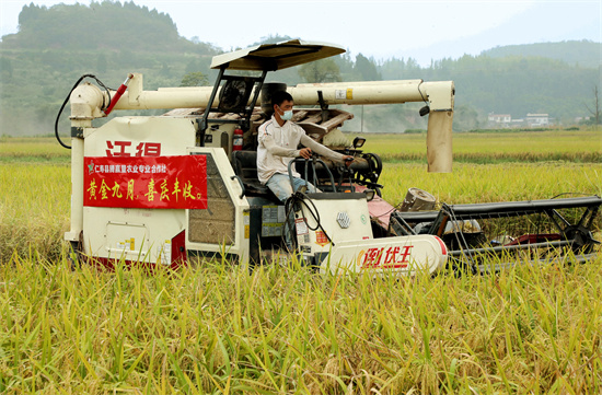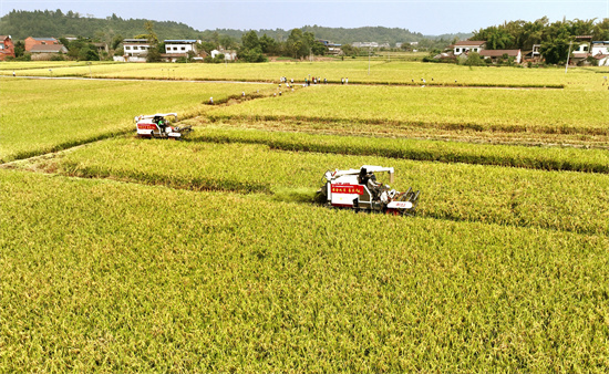 四川新闻网消息 又是一年秋收季,9月13日,走进位于仁寿县方家镇水池村的粮食基地内,只见成片的稻田连绵起伏,稻粒颗颗饱满,当地群众满怀丰收的喜悦,开镰割稻。