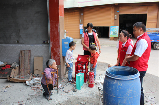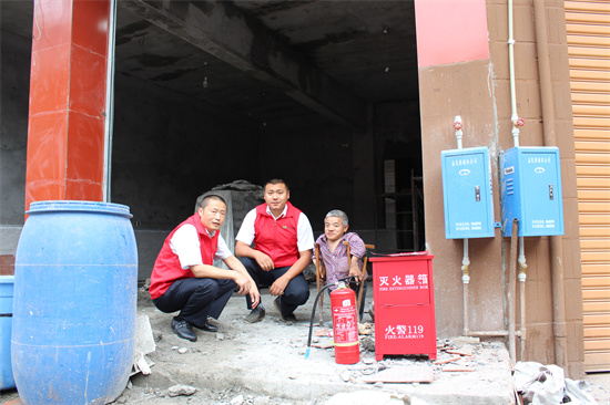 刘巍(左二)为杜仕杰(右一)送上消防器材。文琴摄