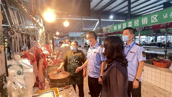 9月30日早7时,市局党组书记、局长袁利民带队前往圣丰农产品批发市场、眉山大市场等地,对应急状态下疫情防控工作进行督促检查,发放价格提醒告诫函,强化宣传引导、告诫提醒,要求经营者加强价格自律,合理定价,不得扰乱正常的市场价格秩序。市市场监管局和东坡区市场监管局抽调精干力量107人,对14个农贸市场进行包保。重点对农贸市场内食品安全、价格巡查、相关数据收集上报;负责包保市场周边药店等场所的检查。其中,圣丰农贸市场执行24小时工作制,每天4班。