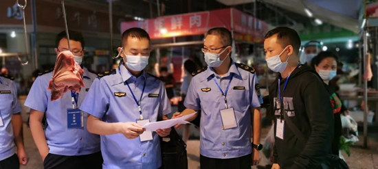 市场监管各工作组强化对农贸市场疫情防控及食品安全监管情况的检查,出动督查人员100余人次,检查调味品、蔬菜、干杂、肉类、水产经营店等221家经营摊贩等疫情防控措施落实情况,发现市场门口无人值守、未对进入人员测温监测等问题17个,现场责令整改13个,交属地督促整改4个。