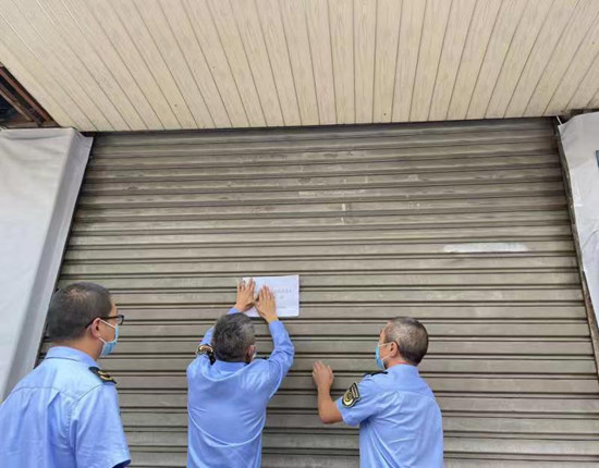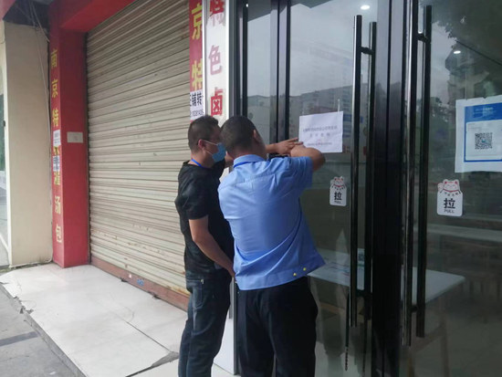 “静态管理,市场主体务必静下来。”在副局长宋小明带领下,凤鸣市场监管所所长刘健、观音市场监管所所长陈福洪,以及食品经营股股长倪松各自带队对全区城区来回全面巡查检查,按照区疫情防控指挥部要求,对不属于生活必需物资保供范围以及超市、生鲜店、仅供外卖餐饮等执行疫情防控政策不严不实的商家张贴封条、坚决关停处理,期间关停247家店铺。