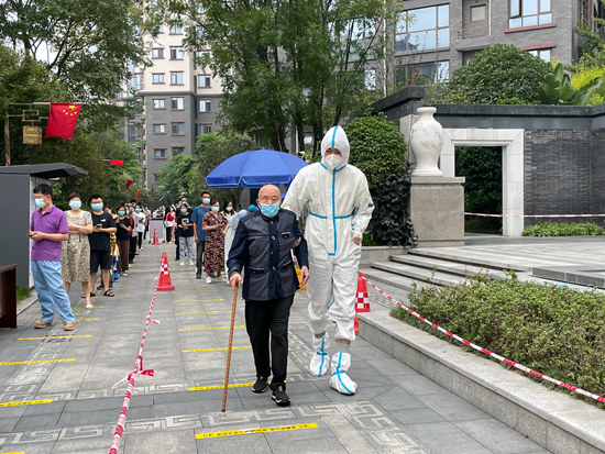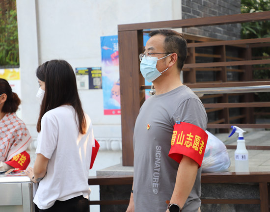 据了解,周杰枫是一名有着15年党龄的党员,在接到眉山市烟草局通知请大家就地转为志愿者后,第一时间加入浣溪台志愿者队伍,从事维持核酸采样点秩序的工作。“别看小伙子两米的大高个,做事细心得很。”周杰枫在看到行动不便的老年人时都会主动上前帮忙。