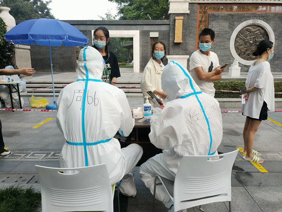 “请大家戴好口罩,保持一米间隔,出示健康码……”9月30日,党员志愿者们第一时间响应,奋战在核酸检测点位、小区门口的第一线。“因为疫情,我也暂时不能上班,就想做一些力所能及的事情,就地转为做志愿者,大家都很支持。”周杰枫说。
