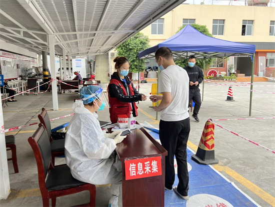 眉山天府新区网格员在核酸检测点开展防疫宣传