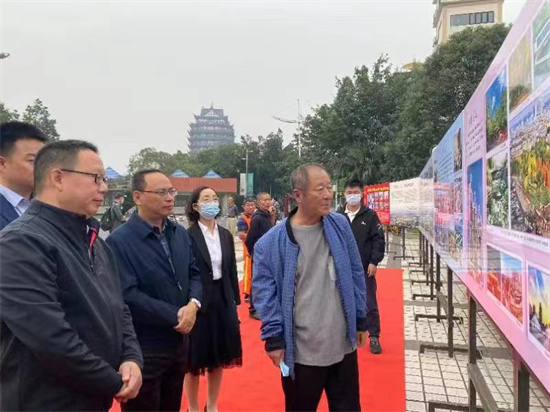 四川新闻网消息(钟书曼 郑佳洁 摄影报道)百年沐雨栉风、踔厉奋发;巍巍红船巨轮,再启新航。10月24日,九三学社眉山市委员会、眉山市文化广播电视和旅游局在眉山市东坡湖广场联合举办摄影图片展。眉山市副市长、九三学社眉山市委主委李建兴宣布摄影展开幕。