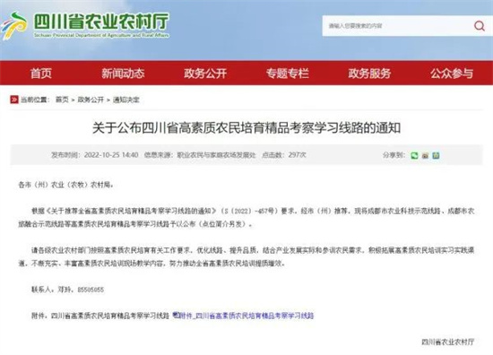 四川新闻网消息 近日,四川省农业农村厅公布四川省高素质农民培育精品考察学习线路。眉山4条线路上榜。