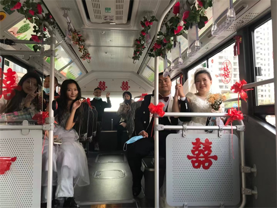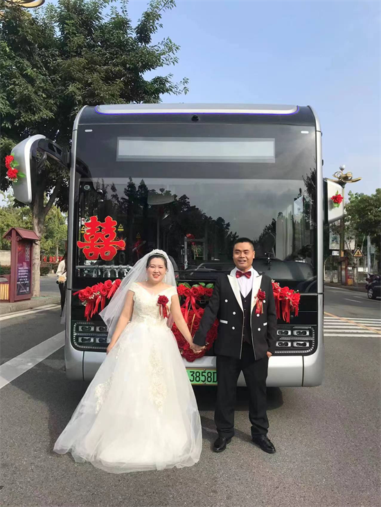 “公交车做婚车不仅方便,成本相对较低,还符合国家绿色环保出行的号召,作为一名公交人,更应该从我做起,带头响应绿色出行的口号。” 新郎彭艺喜气洋洋地说道。