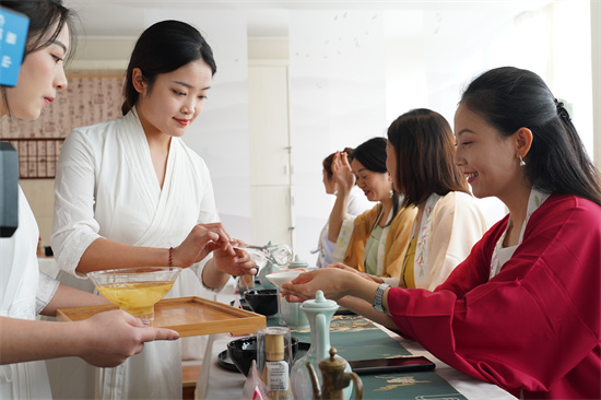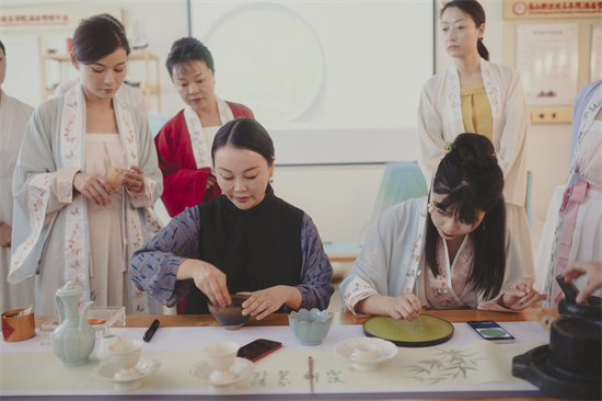 活动中,眉山职业技术学院商贸旅游系茶艺副教授李倩引导大家品鉴牡丹花茶,交流家风家训和中华孝道,借此深刻感受宋代风雅颂。