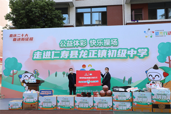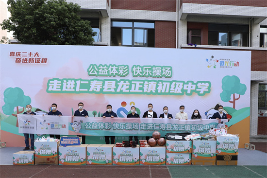 四川新闻网消息(周静 郑佳洁 摄影报道) 11月16日,四川省体育彩票管理中心眉山分中心(以下简称“眉山体彩”)走进仁寿县龙正镇初级中学,为学校捐赠足球、篮球、乒乓球拍、羽毛球拍、短绳、长绳等共计280余项体育器材。