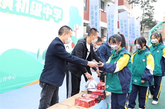 崭新的体育教学器材发放到学生手中,各个脸上洋溢着感激的笑容。“今天收到这么多体育器材非常开心,这些器材会使我们之后的体育课和社团活动更加丰富有趣,感谢眉山体彩对我们的关心与关爱,今后我们一定用优异的成绩回报家乡,回报社会。”九年级五班学生周岚说。