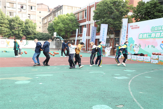 捐赠仪式结束后,眉山体彩分别组织开展了“快乐篮球体育课堂”及多项趣味健身运动教学。活动中,篮球指导老师带领学生进行基础运球训练,展开防守战术指导课程……眉山体彩现场工作人员也积极加入到接下来的体育运动大比拼中,与同学们共同感受体育运动带来的乐趣和魅力,校园里充满了欢声笑语。