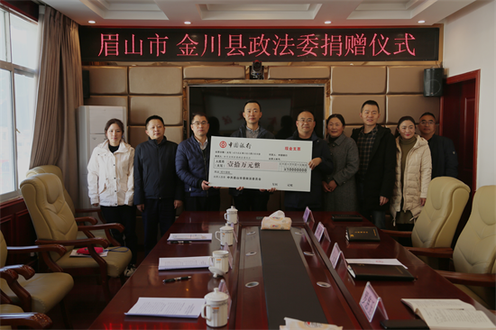 座谈会上,眉山市委政法委向金川县委政法委捐赠对口帮扶资金10万元。