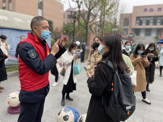 同时,公司党员志愿者分别前往齐通小学、苏洵中学、东坡中学等各个考点,指引送考车辆安全停靠、引导考生有序乘车、耐心提醒其佩戴好口罩、扫车辆场所码,并现场解答考生乘车线路走向等实际问题。