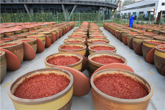 在四川老坛子食品有限公司,相关负责人向客商展示了一家有百年非遗传承的传统泡菜生产企业的日常,并讲述了四川泡菜老坛子中的故事,记录非遗传承人坚守传统技艺背后的辛勤付出。