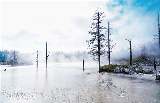 11月30日凌晨起,瓦屋山景区陆续开始飘雪,清晨已被铺上一层薄薄的雪粒,目前景区内依旧在持续降雪中。雪粒、雪花纷纷扬扬地飘落下来,让整个瓦屋山顶白了头,山顶冷杉林、箭竹林、游步道、观景台也都被披上了一层晶莹的白色羽衣。景区内的游客都享受着降雪带来的喜悦,一时间,瓦屋山的雪景刷爆了朋友圈。